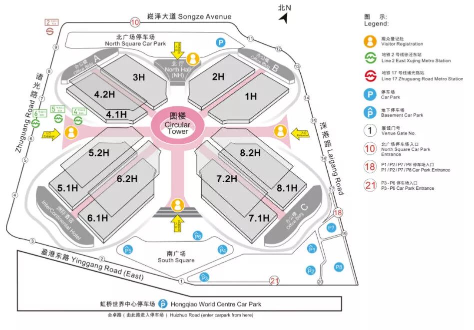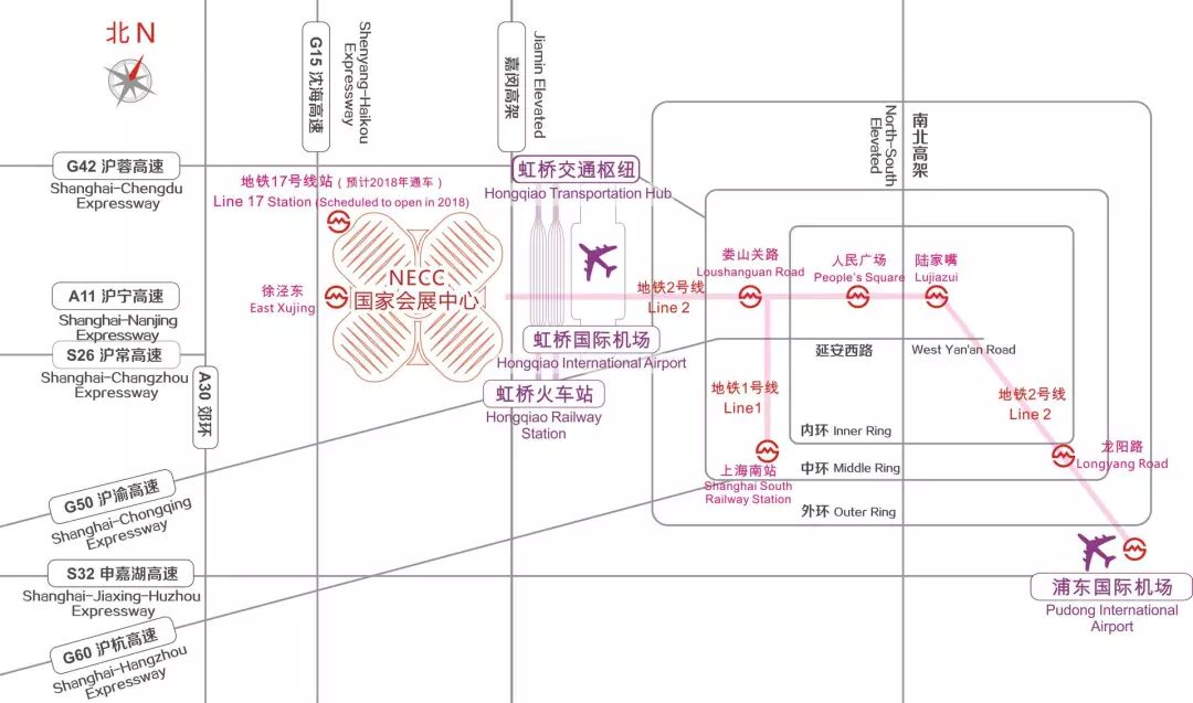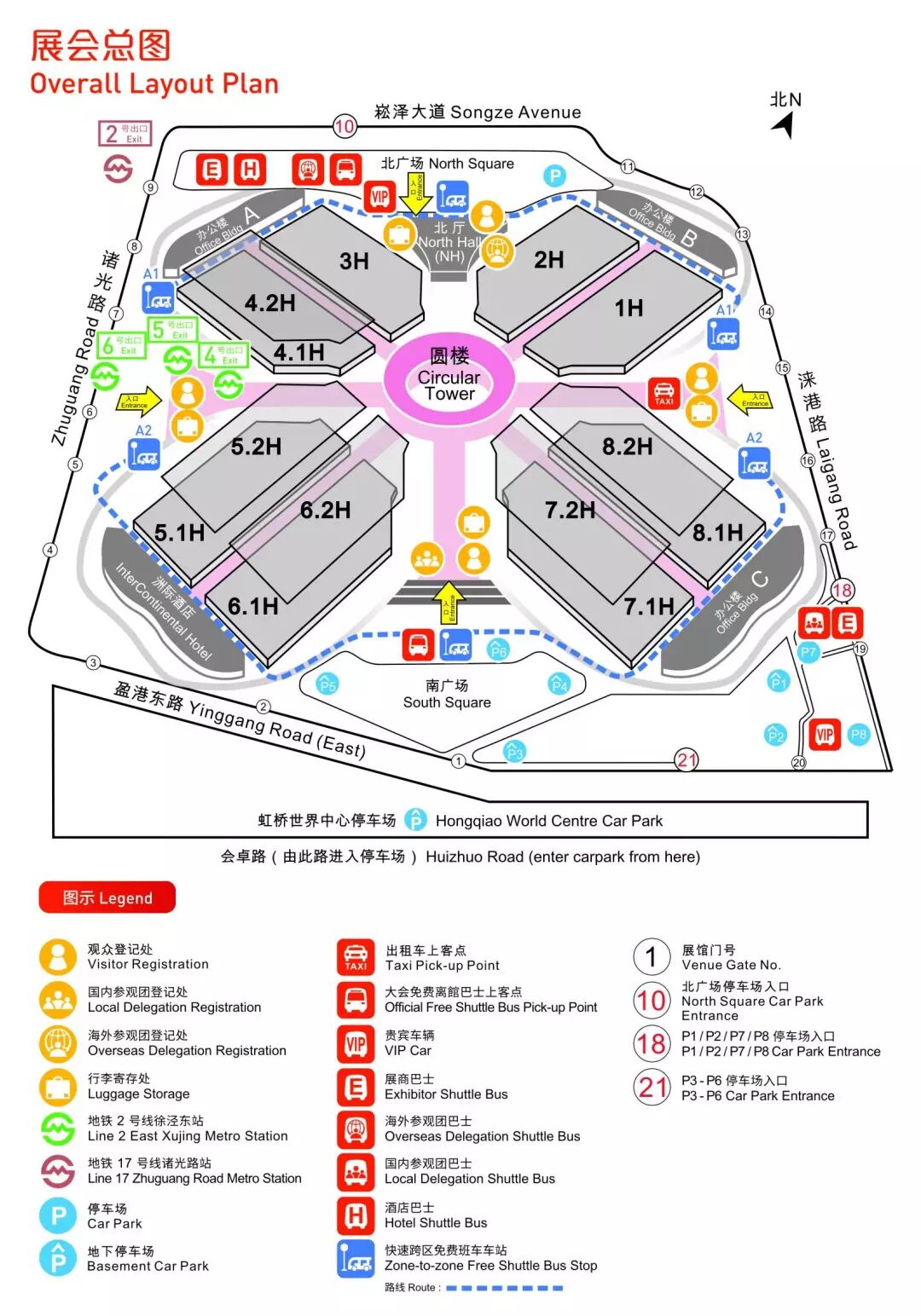 从上图可以看出,展馆靠近虹桥国际机场和虹桥火车站,通过地铁2号线的徐泾东站,可以直达展馆。